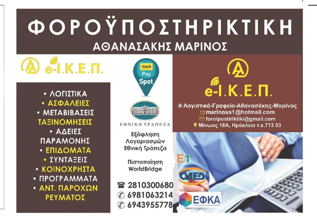 Ιδρυτής της εταιρείας είναι ο κ. Αθανασάκης Μαρίνος Λογιστής Α' τάξης και πιστοποιημένος πράκτορας Ασφαλειών από την Τράπεζα της Ελλάδος. Επίσης είναι πιστοποιημένος συνεργάτης από την Worldbriadge και την Εθνική Τράπεζα προβαίνουμε σε εξόφληση λογαριασμών πελατών.